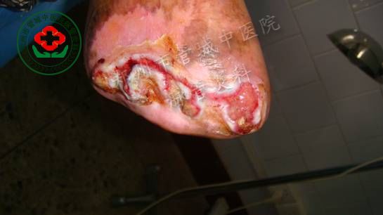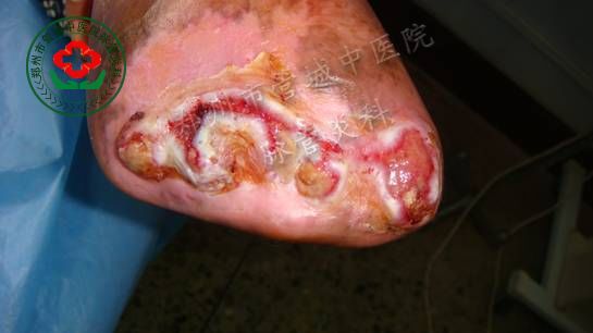 3、中药换药处理,注意伤口清洁,并行中医化腐清创术,剔除暴露的骨质