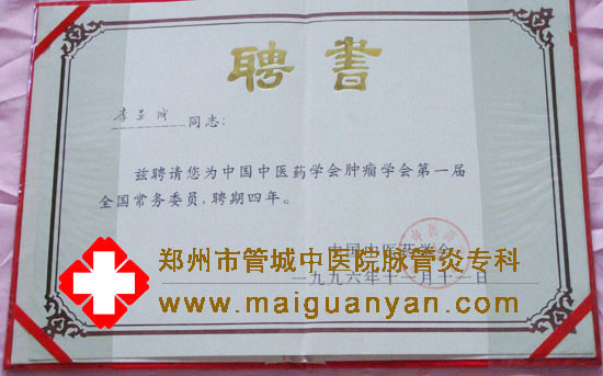 脉管炎的治疗 > 科室荣誉 > >>中国中医药学会肿瘤学会第一届全国常务委员
