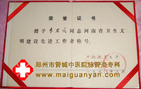 脉管炎的治疗 > 科室荣誉 > >>河南省卫生文明建设先进工作者