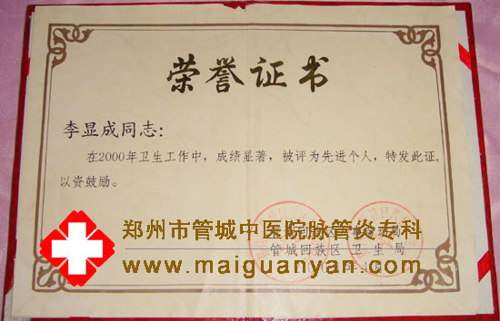 转载请注明:郑州市管城中医院脉管炎科(http://www.maiguanyan.com) 本篇文章: 2000年卫生工作中先进个人 http://www.maiguanyan.com/rongyu/329.html